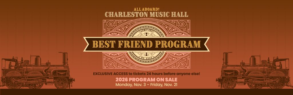 By joining this special program, you will get the chance to buy seats in specific sections 24 hours before the general public. On top of these great perks, you will be able to consider yourself a promoter of the arts. We have come a long way in the last few years at CMH, but it is extremely expensive and time consuming to produce high quality shows. Your contribution will most certainly help us continue to strive towards our mission: The Charleston Music Hall exists to create extraordinary experiences and promote the finest local, regional, and national music and entertainment acts. We seek to set a national standard for diverse programming, engagement with our audiences, and leadership within the community in which we reside. Our venue is a safe space where all are welcome and we hope to provide a vital artistic resource for the people of Charleston and the region. We strive to build a better conversation and relationship between the artist and the audience and aspire to the highest levels of artistic achievement while also exploring new and exciting territories in creative vision.